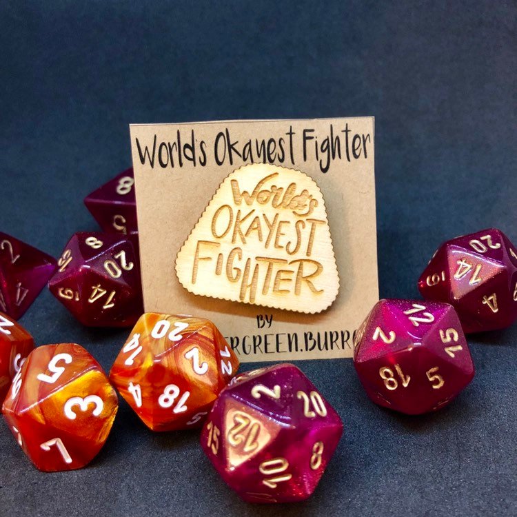 Not a fighter, but play tabletop anyways? Check out our D20 Crit Pin and our World's Okayest Collection: