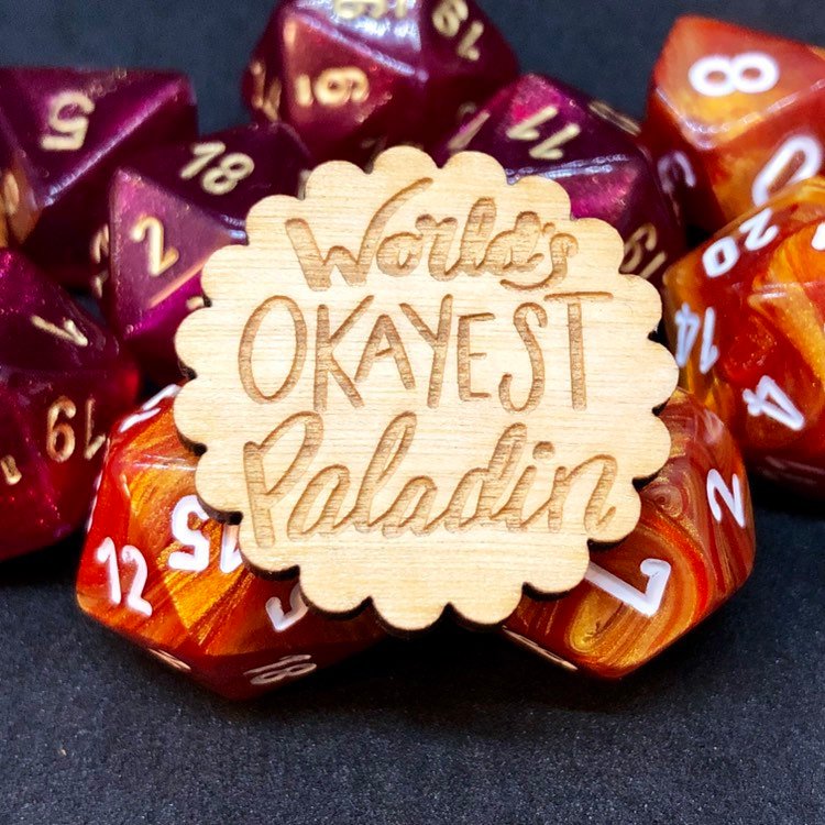 Not a paladin, but play tabletop anyways? Check out our D20 Crit Pin and our World's Okayest Collection: