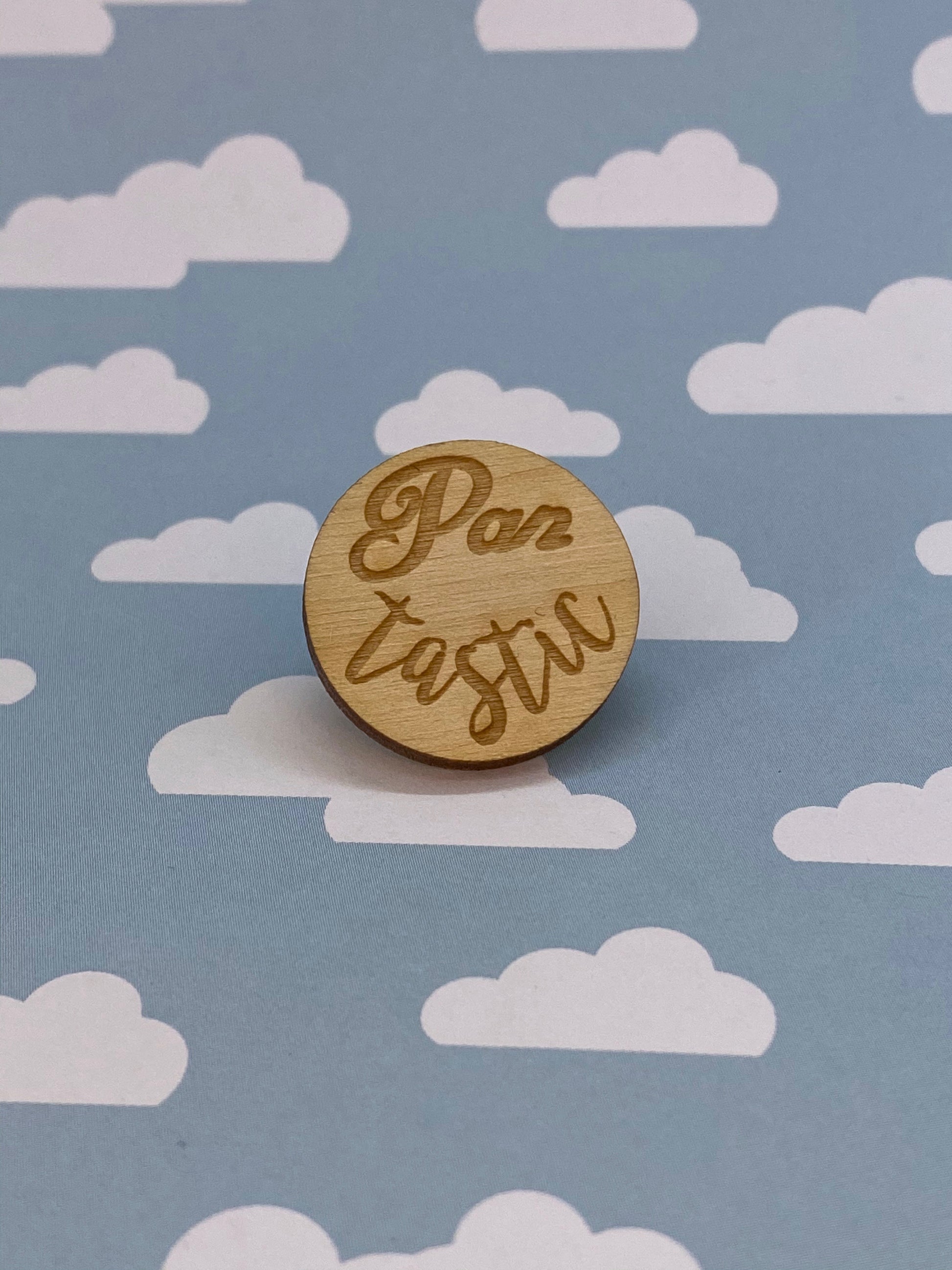 Wooden pins are made from natural materials and may vary slightly from the images above- this makes each and every one of them a unique piece! Wooden pins come on a backer card with a standard silver pin post and a black rubber clutch.