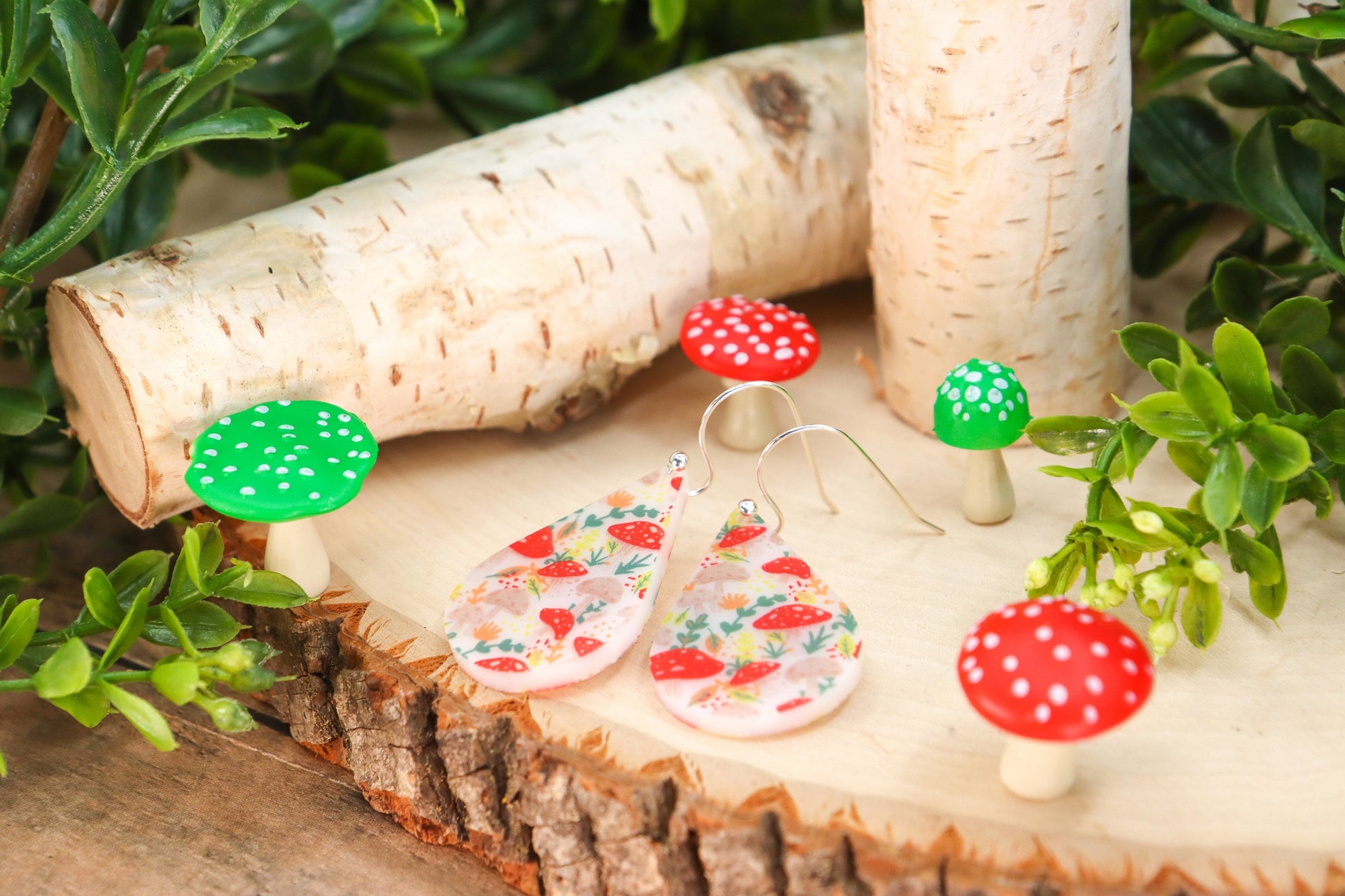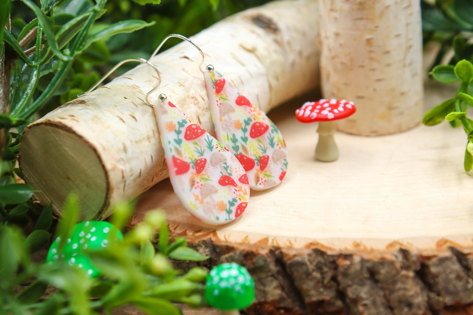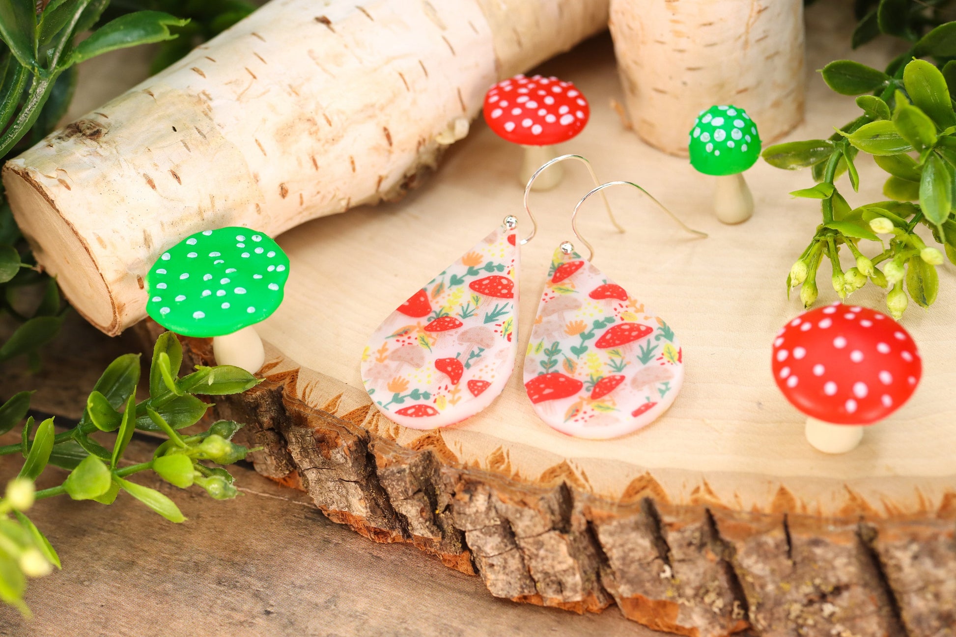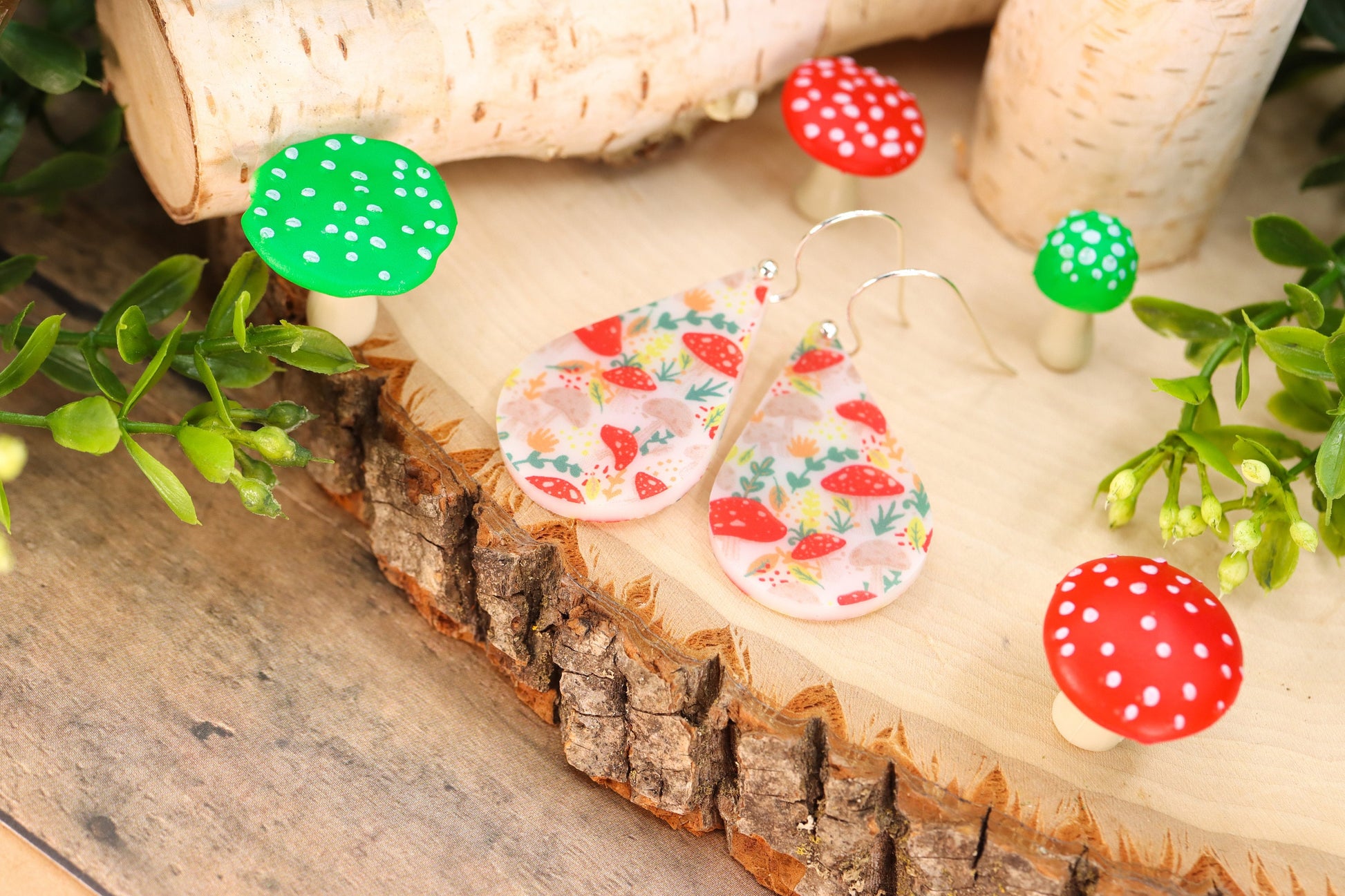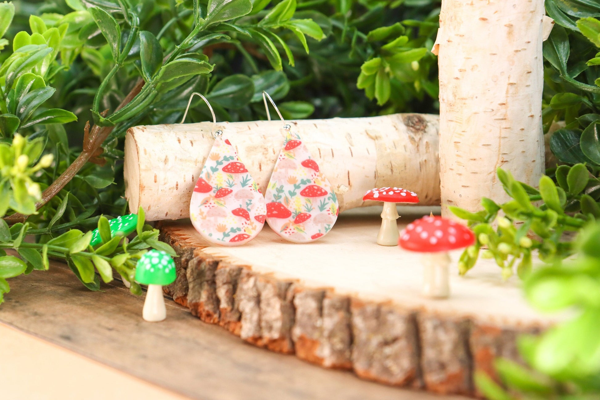The perfect gift for any cottage core enthusiast, these teardrop earrings have an adorable mushroom print! Equally at home foraging or at the renaissance fair, these cute earrings make any outfit a fun-gi!