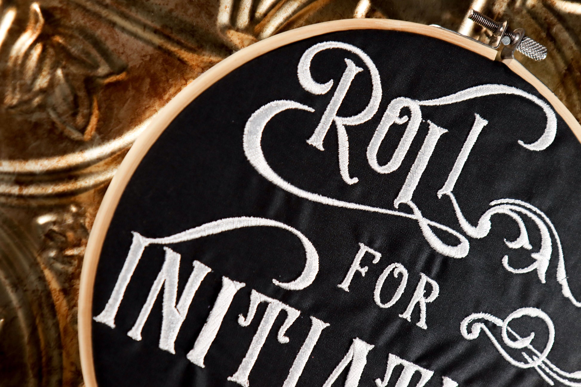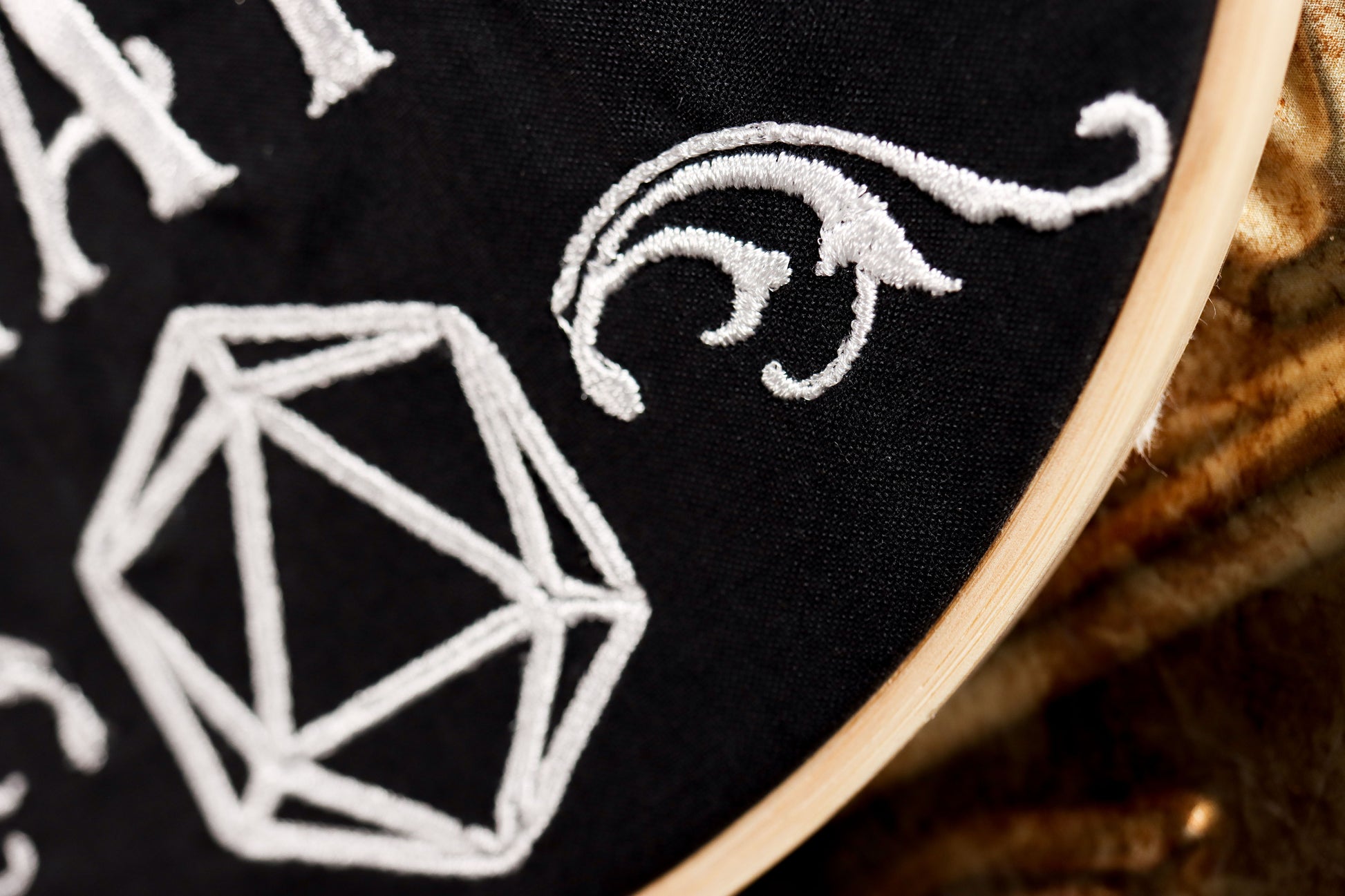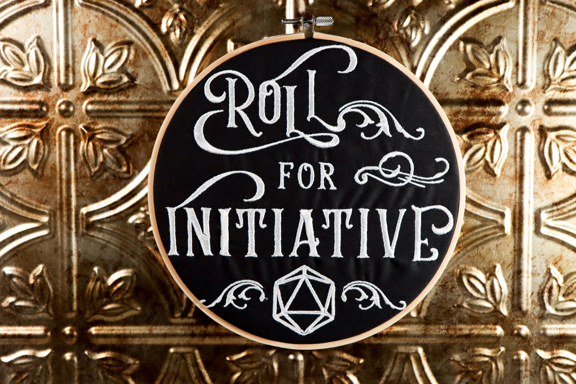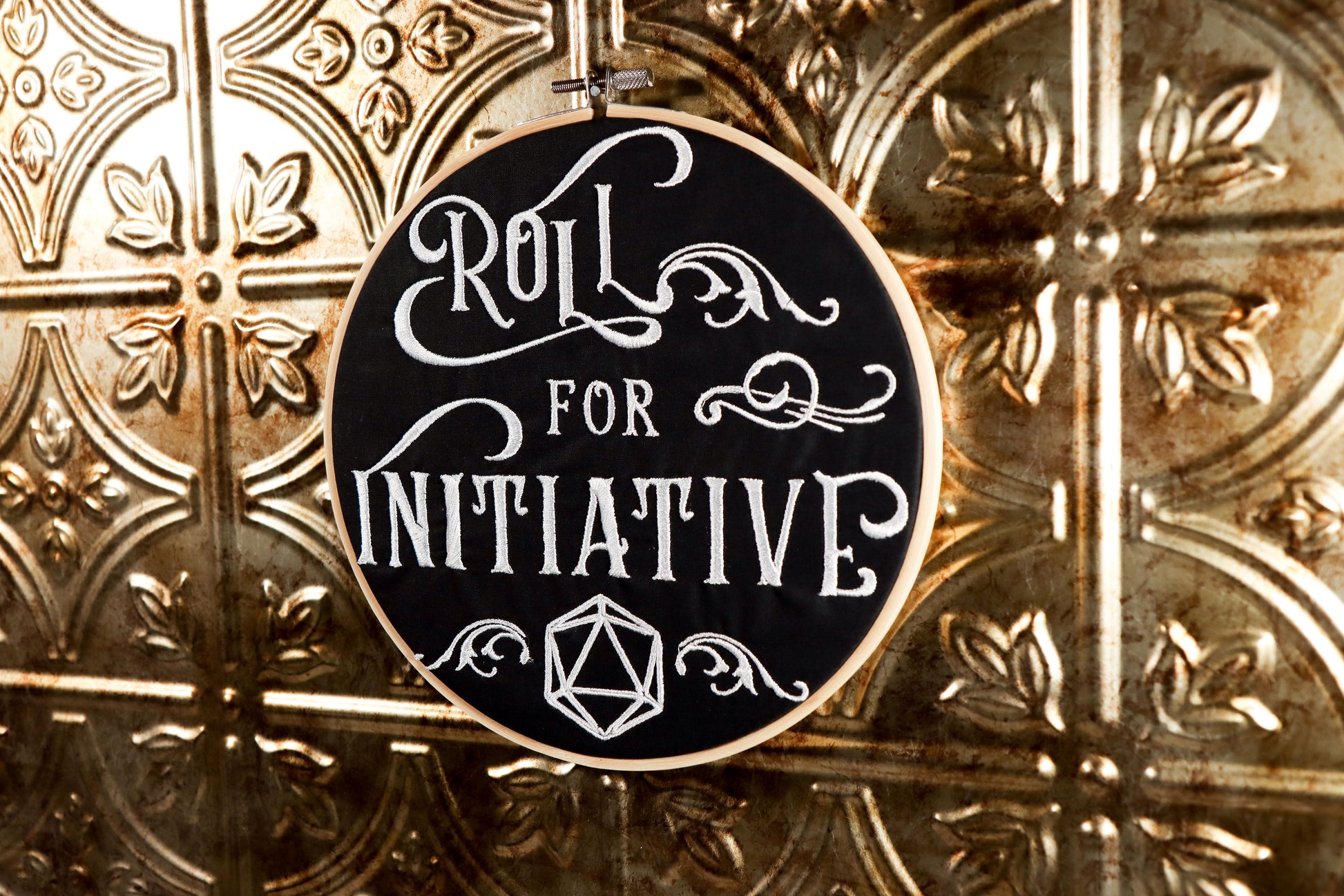 Perfect for game rooms and tables of all kinds, our original Roll For Initiative embroidery hoop design fits your game room aesthetic. Available in a rainbow of colors, and classic black and white, this hoop is sure to entertain your guests, NPCs, and adventurers alike!