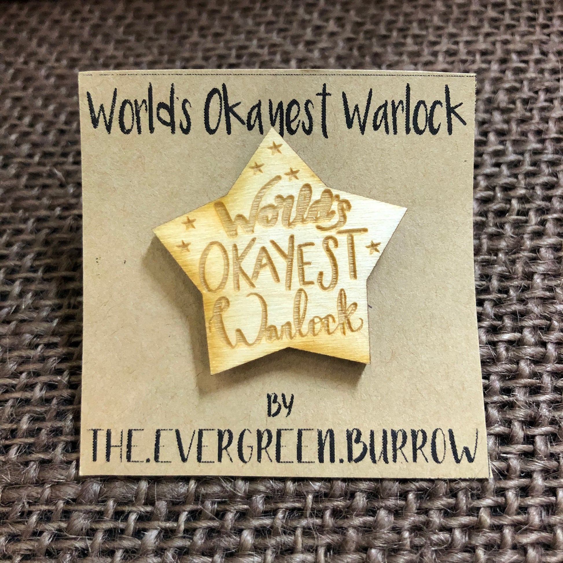 World's Okayest Warlock Tabletop Class Wooden Pin