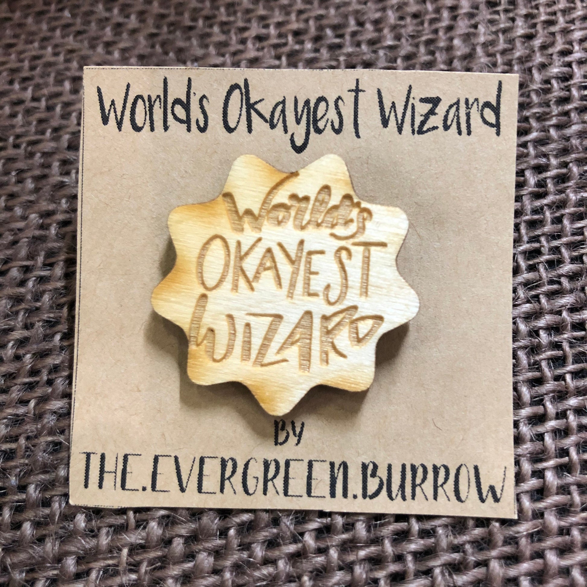 World's Okayest Wizard Tabletop Class Wooden Pin